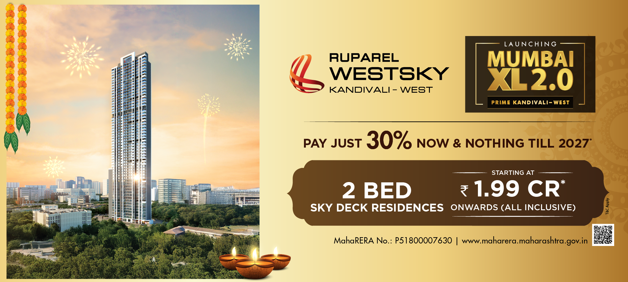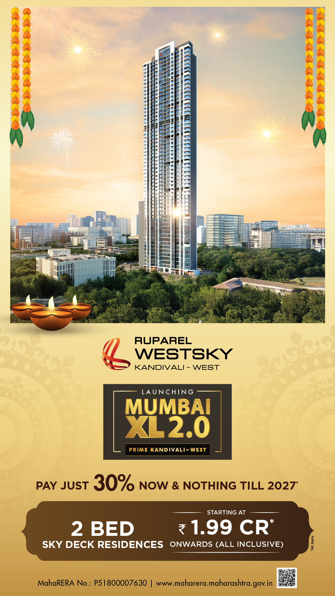 Site address: Ruparel Westsky, Near Dahanukarwadi Metro Station, Off New Link Rd, Kandivali West, Mumbai 400 067